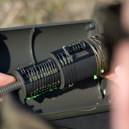 As well as being able to hold 28 pre-tied chod rigs, there is also space for three leadcore leaders complete with Heli-Safe Systems.